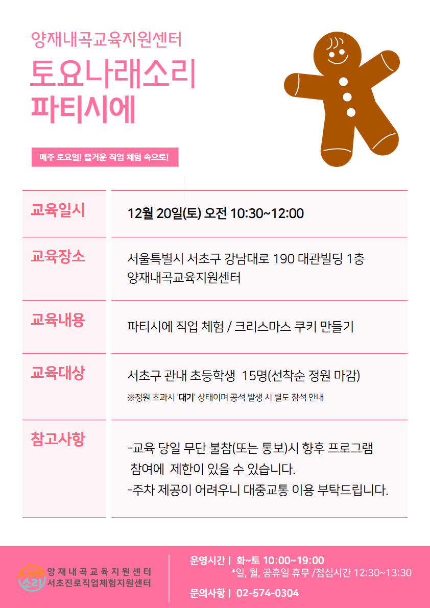 12월 20일 토요나래소리 [파티시에] 신청페이지 (인원별 개별 접수 ※형제자매도 개별 접수 필요/중복 접수 불가)