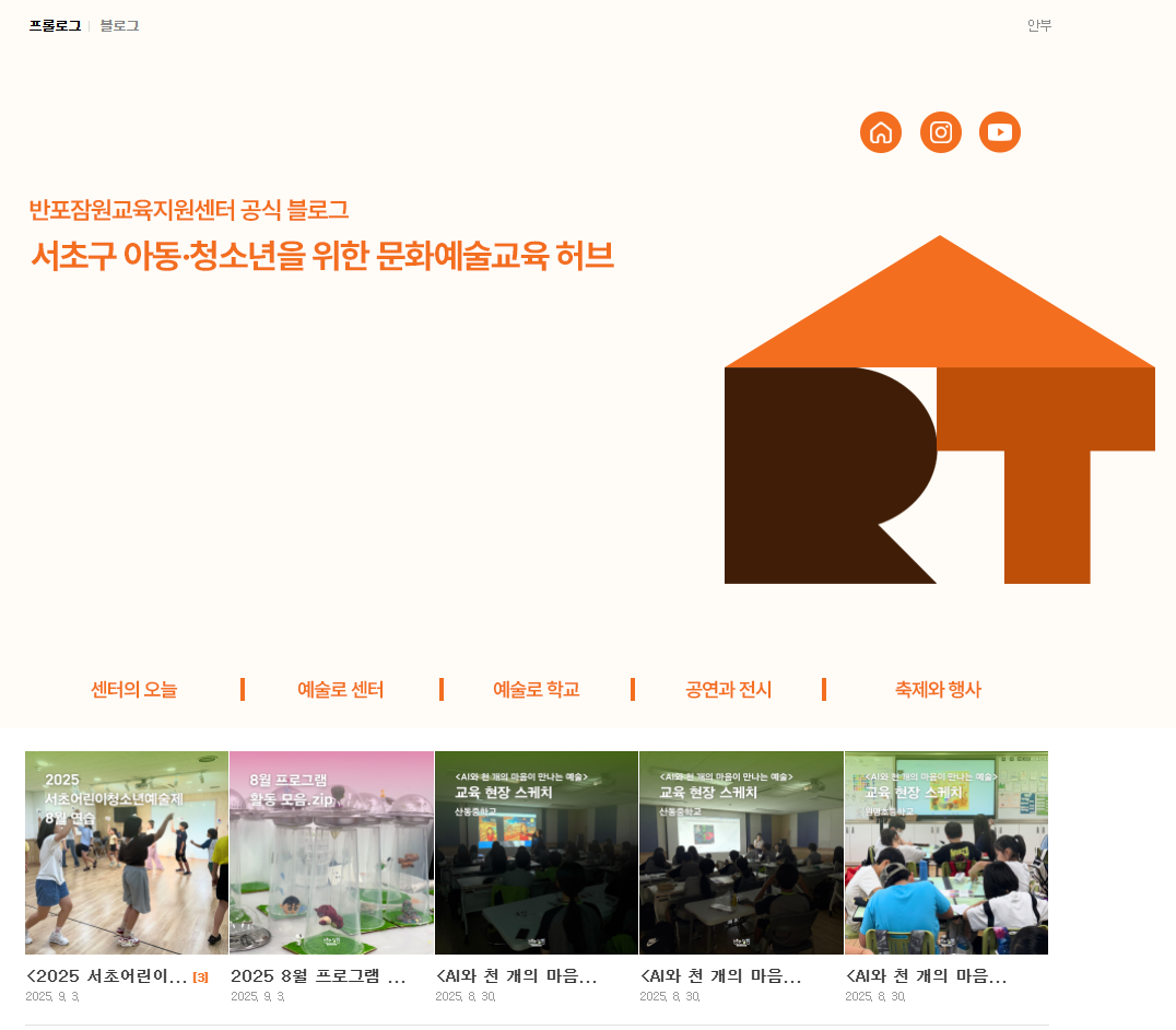 반포잠원교육지원센터의 공식 블로그가 문화예술교육에 관한 풍성한 콘텐츠로